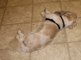 I've never seen that dog sleep on the kitchen floor, but that dog has never spent a full day chasing a three-year-old.