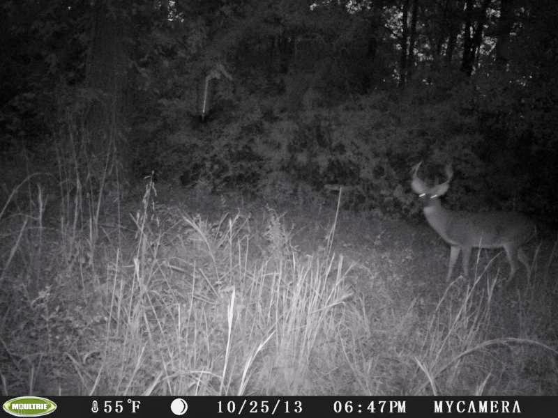 Notice this photo, taken at 6:47 pm on Ocober 25th of a nice, shootable buck. What I find interesting is that we can see sky through the trees, and while the buck might not have been visible with a lesser camera, it might also have presented itself during the last available minutes of legal shooting hours. This is a great job by the camera in capturing an image that lesser camera's might have missed.