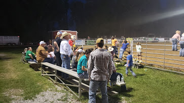 Our church hosted a rodeo tonight, and we had a pretty good turnout from the small town we live in. PawPaw did his part in the cook shack, flipping burgers and grilling sausage to feed this crowd.